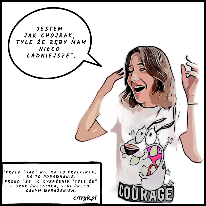 Przecinki – temat długi, szeroki, trudny, łatwy, (nie) do ogarnięcia. Z pewnością nie da się przejść koło nich obojętnie 😉 Macie wątpliwości, gdzie postawić przecinek? Spytajcie korektora – na pewno się ucieszy, o ile nie ucieknie 😀 PS Pamiętacie Chojraka? Tchórzliwego psa, który jest odważny? Nie znalazł się tu przypadkiem 😉