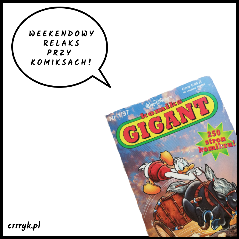Każdy relaksuje się, jak lubi – ja przy komiksach 🙂 Gigant nie jest wybitnym dziełem pod względem językowym, ale – mówię to jako korektor i człowiek – język nie zawsze jest najważniejszy. Tu w grę wchodzą wspomnienia – to mój pierwszy Gigant 🙂 Dostałam go od Brata na Gwiazdkę i wtedy był to najgrubszy komiks, jaki w życiu widziałam! 😀
