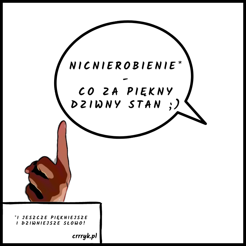 I kiedy człowiek myśli, że na pewno nie ma takiego słowa w języku polskim, a jeśli nawet istnieje, to z pewnością pisze się je zupełnie, ale to zupełnie inaczej, tenże język płata nam figle i mówi, że „nicnierobienie” jest w zupełnym, ale to zupełnym porządku ;))))))